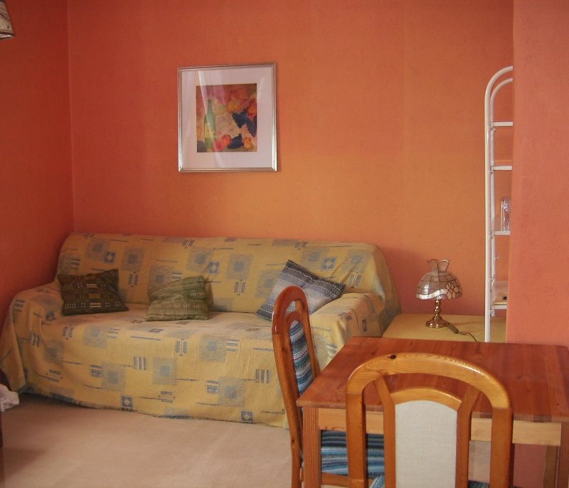 Weiterhin: einen 36cm Farb-TV - Eine kleine Essecke mit Tisch und 2 Stühlen